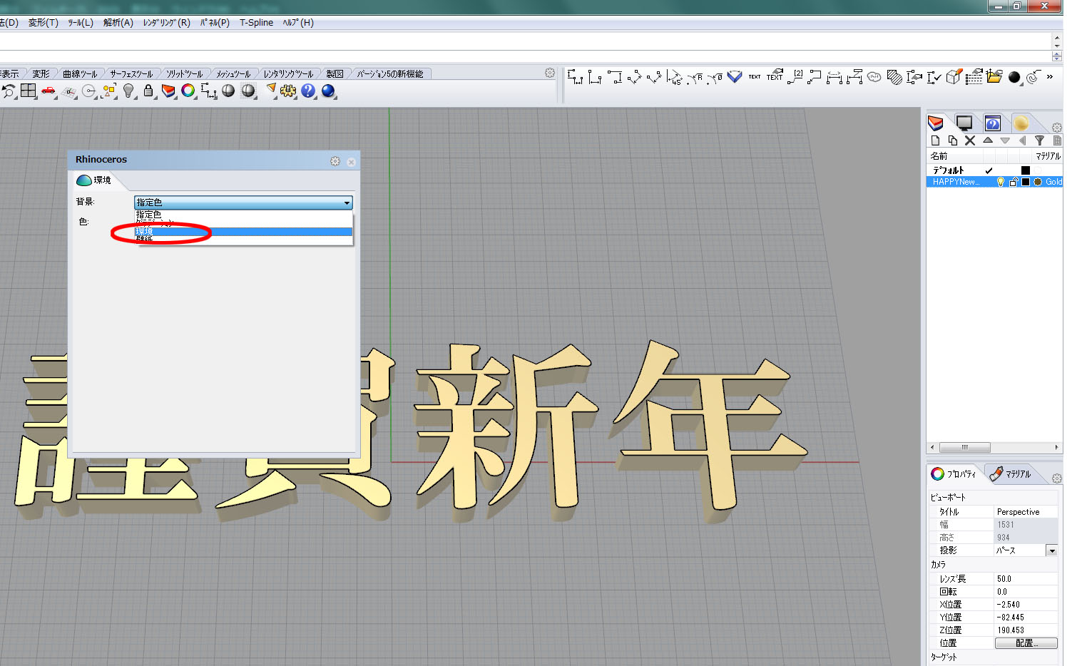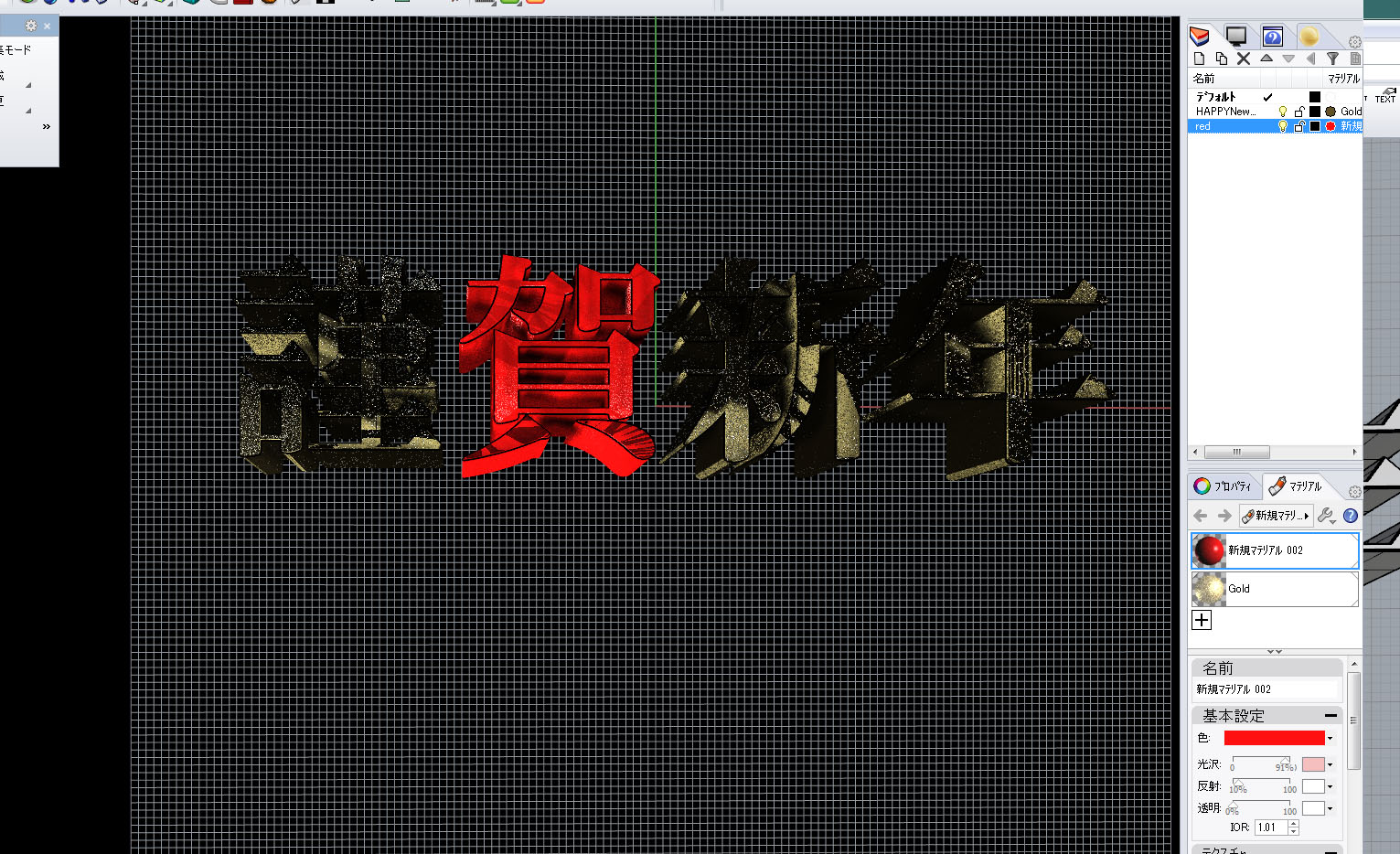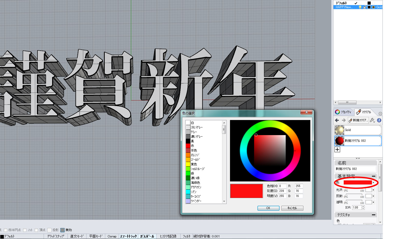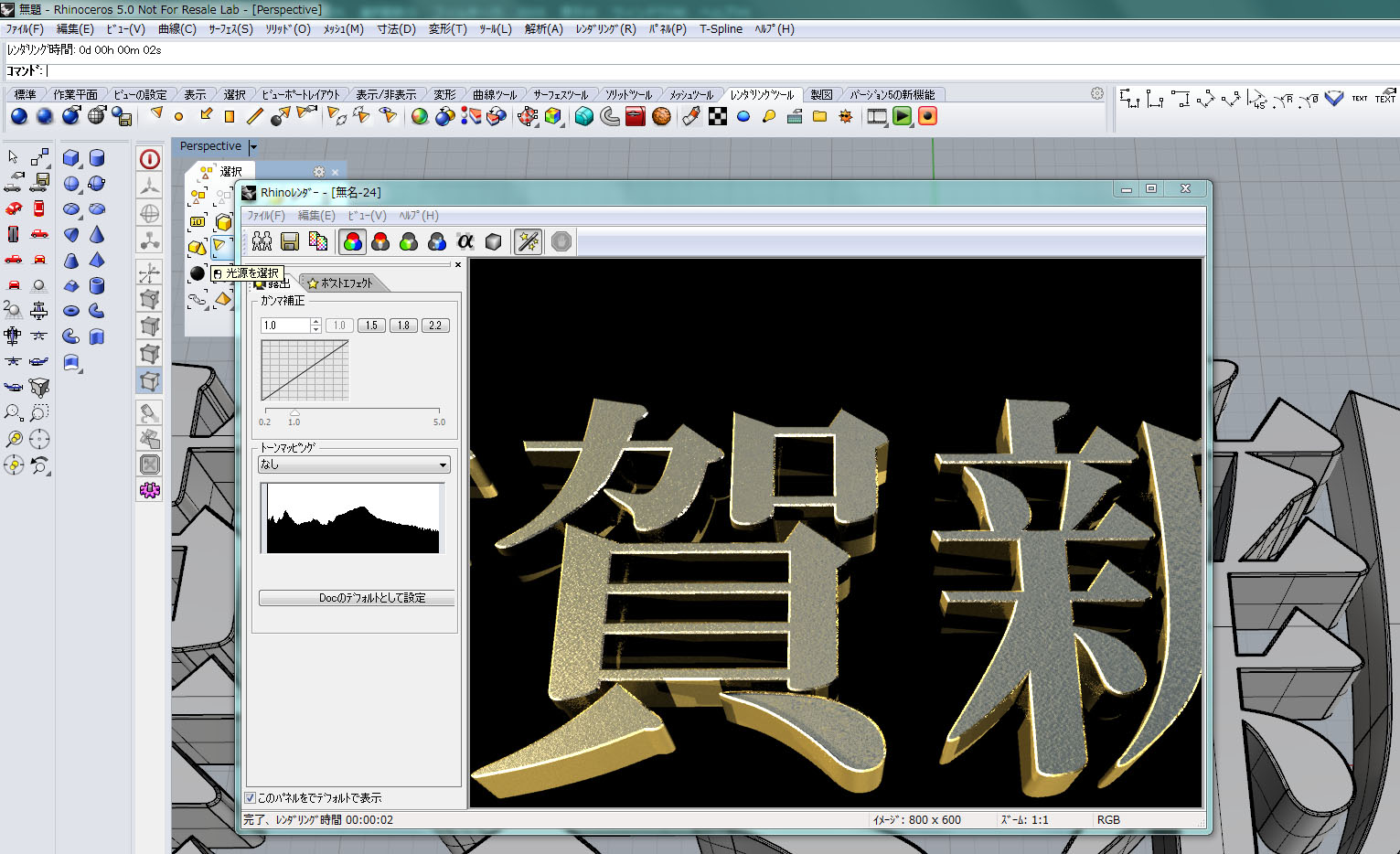 以上 長くなりましたが品の無い「謹賀新年」ができました。せっかくRhinocerosで設計&モデリングしたら、レンダリングまでしてみてください。案外楽しいですよ。