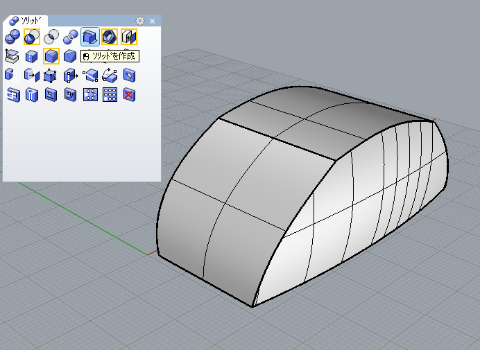 そこで「ソリッドを作成ツール」と使用すると、全てのサーフェスを選択しコマンドを実行するだけでソリッドが作られます。