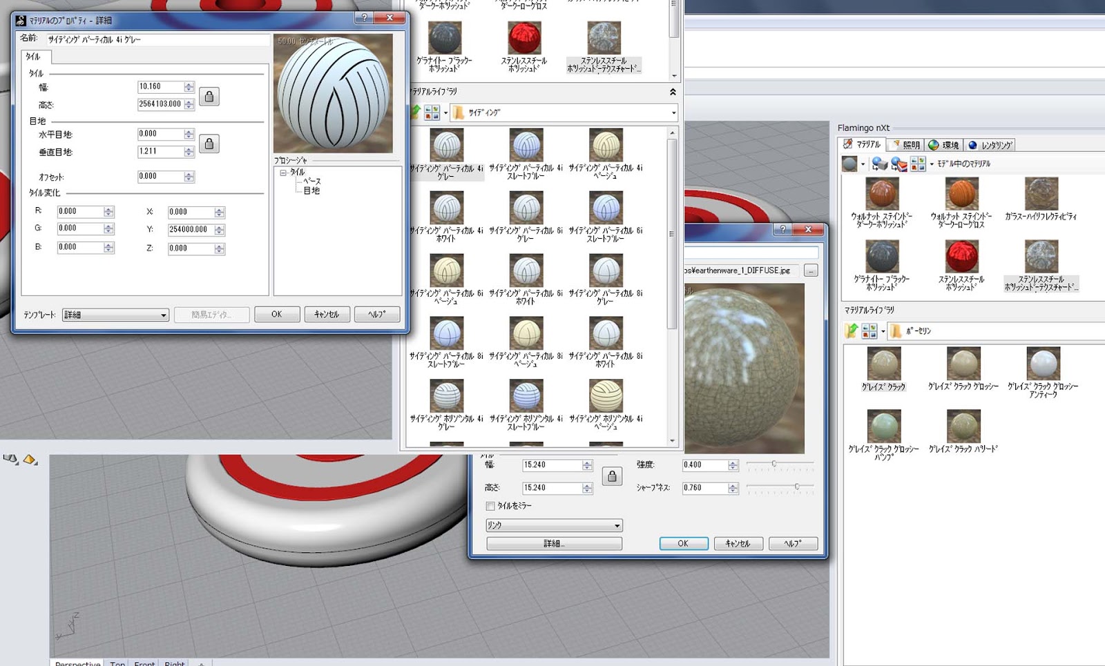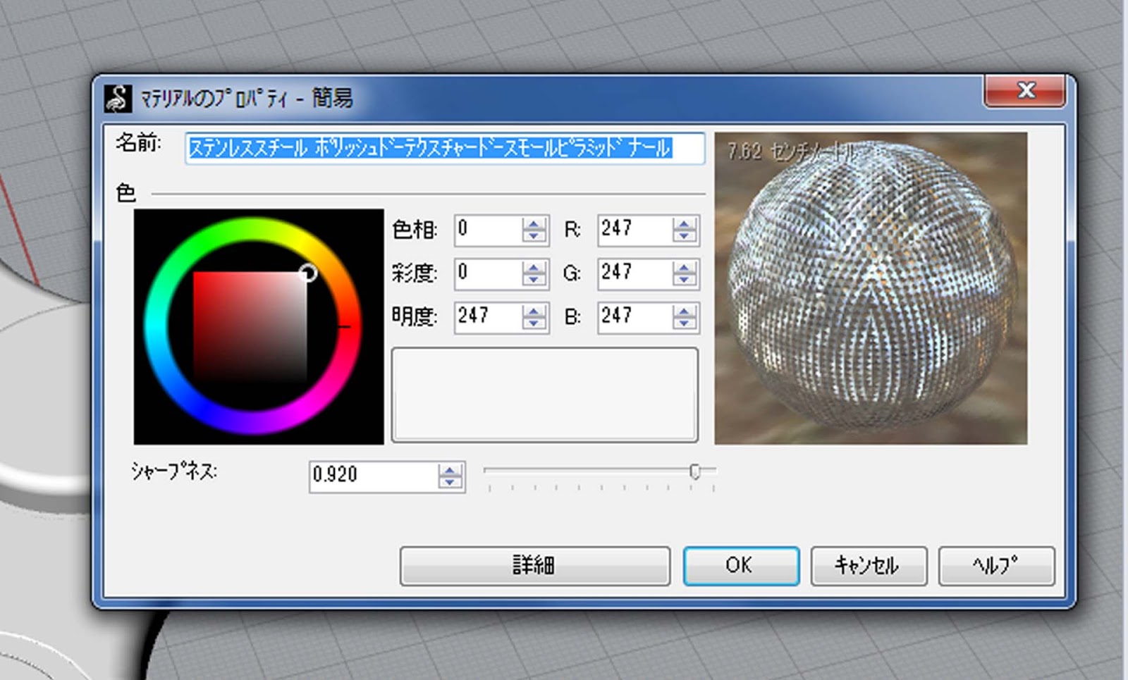 マテリアルアイコンをダブルクリックしてプロパティを開くと、簡単に素材のベース色を変更できます。
