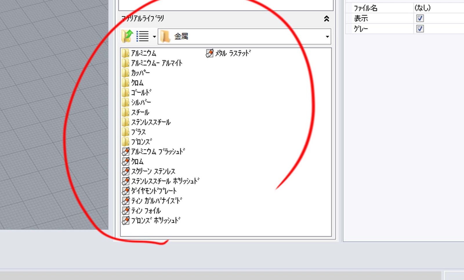 「金属」だけでも10個のフォルダと代表的なマテリアルがざっくり入っています。