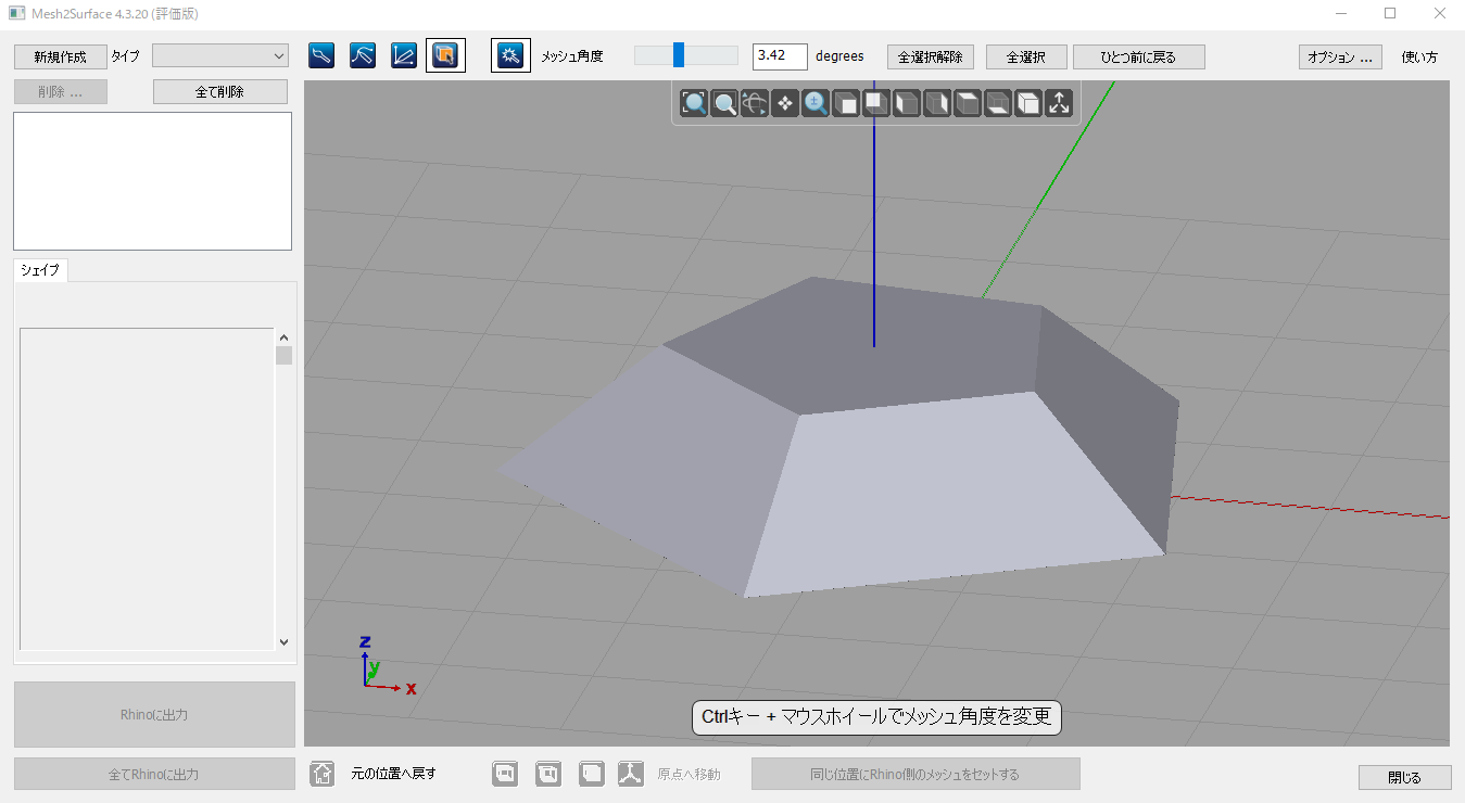 もちろん、Mesh2Surfaceウィンドウの中身も日本語化されています。