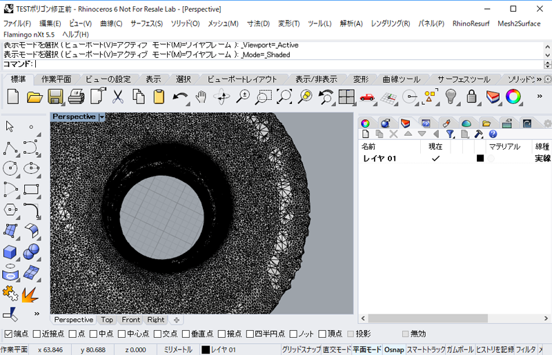 ビューの回転時にも体感的にスムーズに動かせると思います。Rhinoceros 6では以前のバージョンから描画関連のシステムが書き換えられており、より良い環境で作業できるようになっているようです。