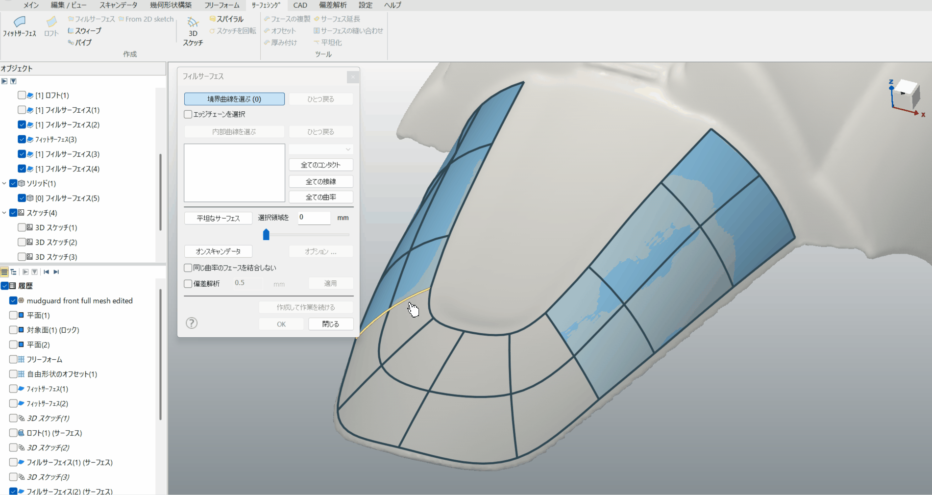 これにより、単に隙間を埋めるだけでなく、周囲の形状との流れを意識したフィルサーフェスを作成しやすくなっています。