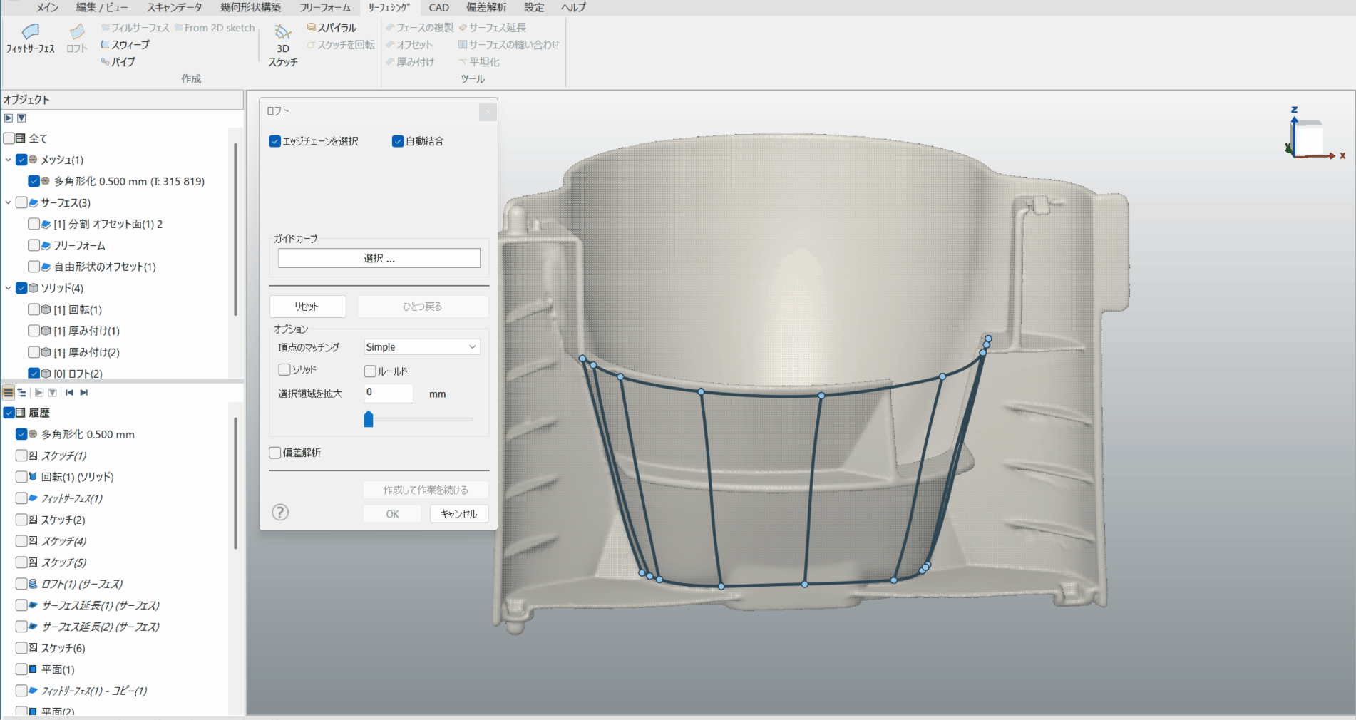 用途に応じて、周囲サーフェスとのつながりを重視するか、スキャンデータへの追従を優先するかを判断し、偏差解析やゼブラマッピングを併用しながら結果を確認して使うのが現実的と言えそうです。