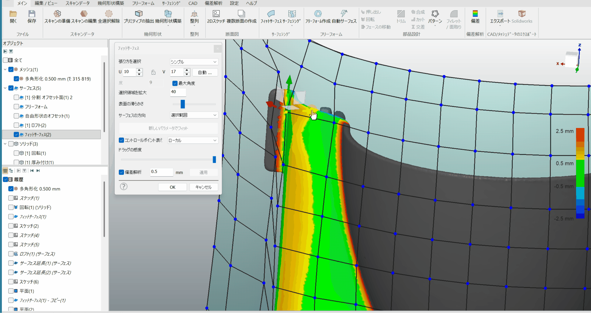 フィルサーフェス機能では、作業中に 偏差解析を確認できるようになりました