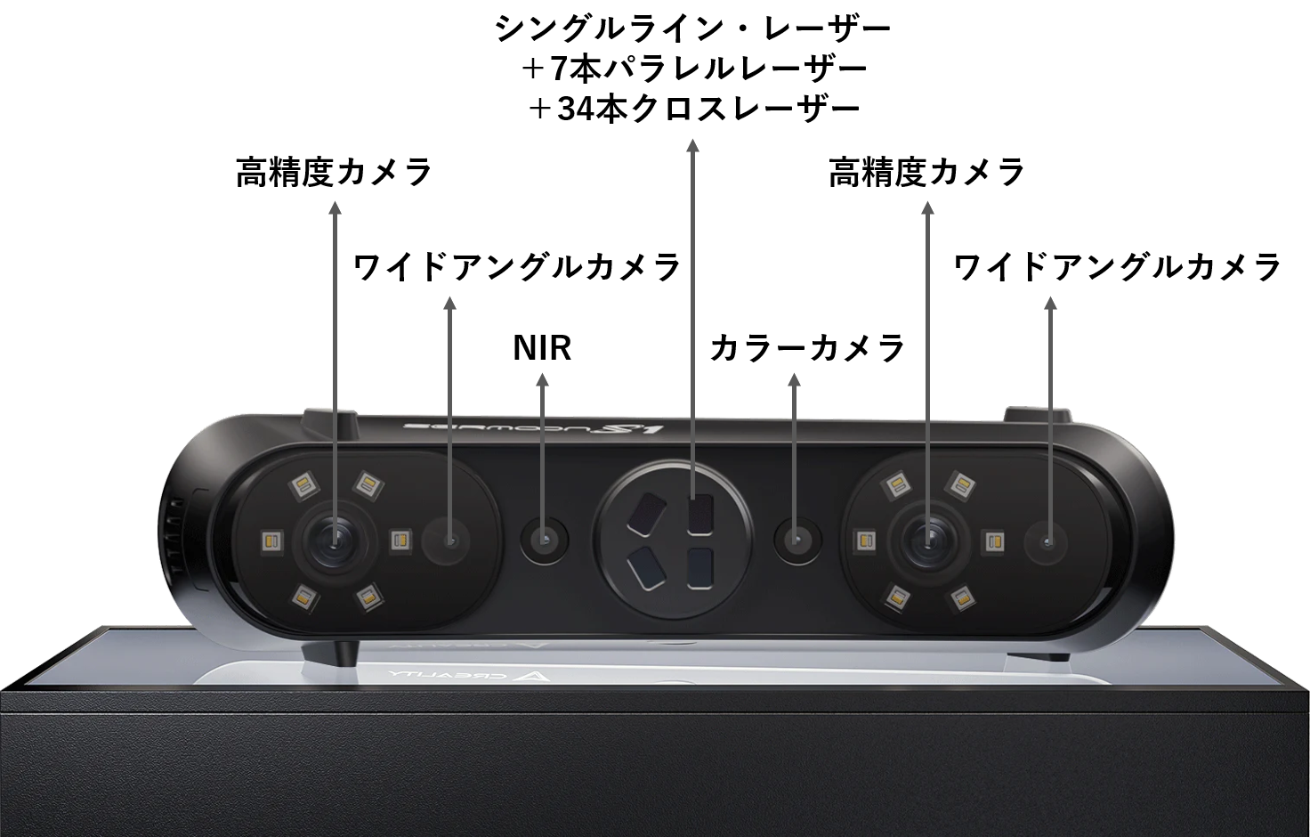 近距離NIRモードでは2つの標準ステレオレンズで高精度スキャン。遠距離NIRモードでは、新に追加された2つのワイドアングルカメラにより、大型物体や人体のマーカー不要での高速スキャンが実現。